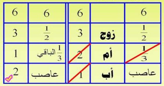 މި ތާވަލުގައި ބަޔާންކޮށްފައިވާނީ، ފަރުޟުވެރިންނަށް ވާރުތައިން ލިބޭ މިންވަރުތަކާއި، އެ މިންވަރުތައް ލިބޭ ޙާލަތްތަކެވެ. ފަރުޟުވެރިންނަކީ: